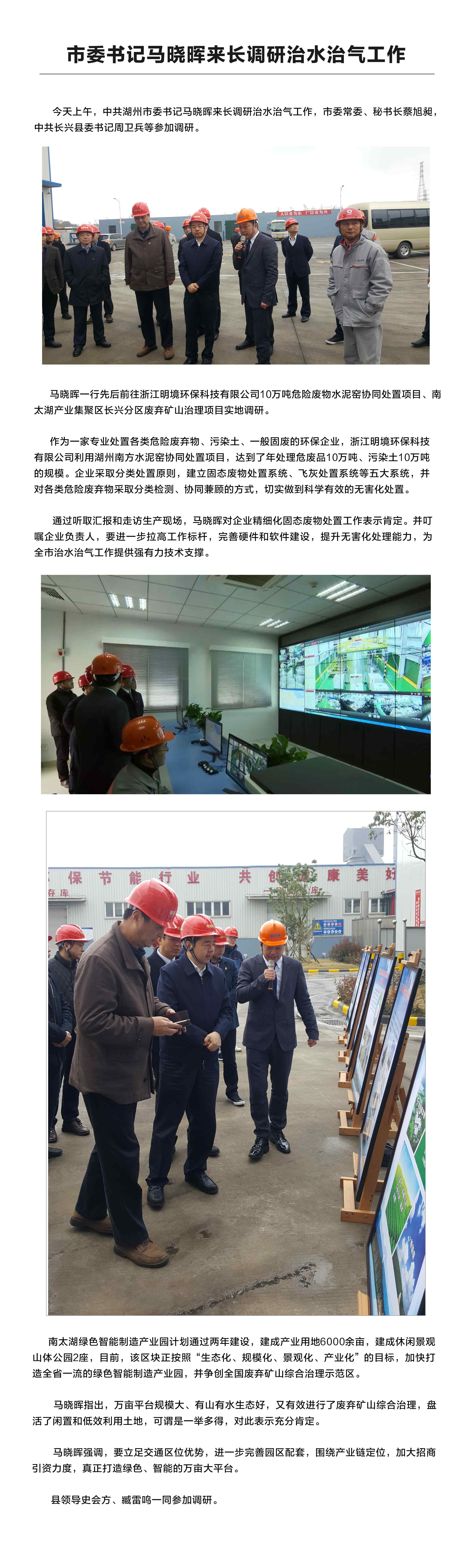 市委書記馬曉暉來明境環保調研治水治氣工作