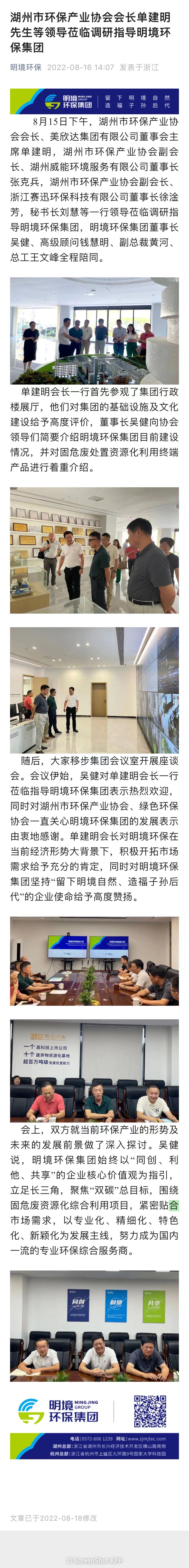 湖州市環保產業協會會長單建明一行 蒞臨指導明境環保集團