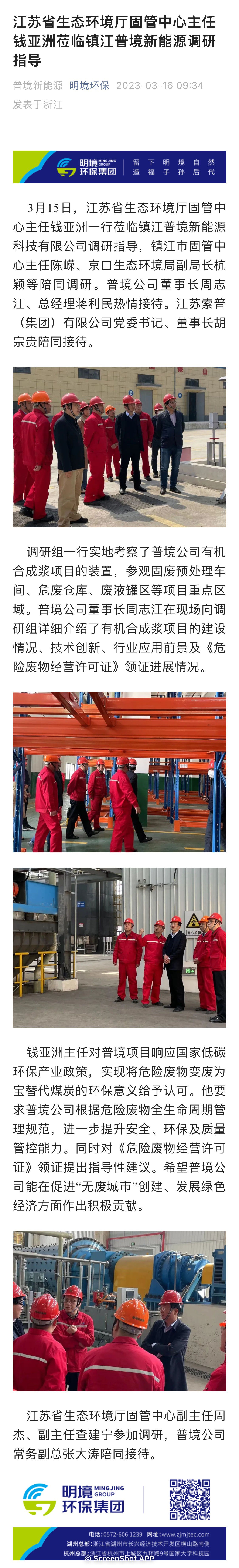 江蘇省生態環境廳固管中心主任錢亞洲蒞臨 鎮江普境新能源調研指導